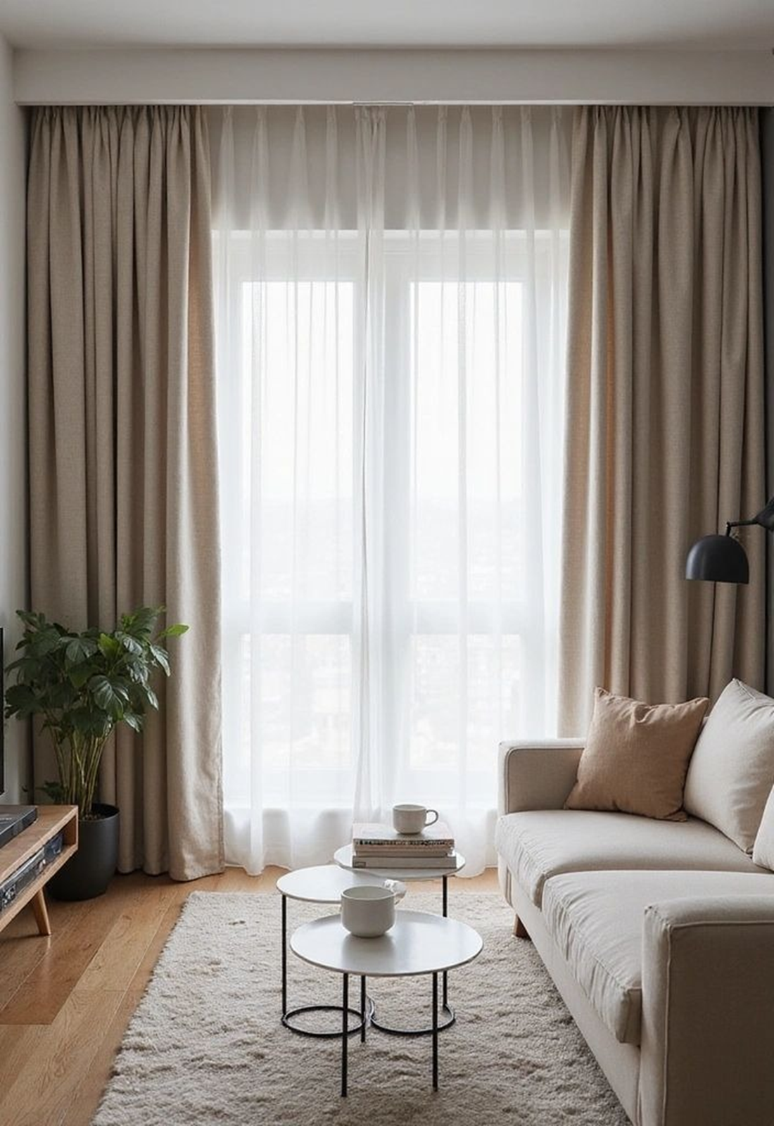 If your living room gets strong afternoon sunlight, sheer curtains alone will make it hot and bright.
